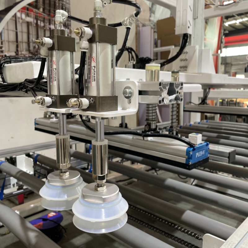 4.Пресирање на истовар: Откако панелот ќе се достави до одредената позиција на опремата за обработка, чашите за вшмукување го ослободуваат вакуумот за да го завршат процесот на вчитување. Во исто време,