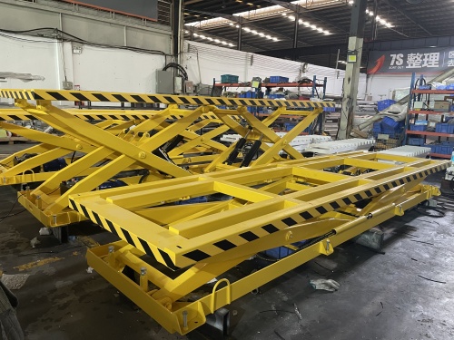 Во производството на мебел од панели, хидрауличниот лифт со ножици е клучен вертикален преносен уред кој поврзува различни подови и процеси. Напојуван од хидрауличен погонски систем, се потпира на проширување и контракција на краците на ножиците за да се постигне непречено подигнување на работната маса.